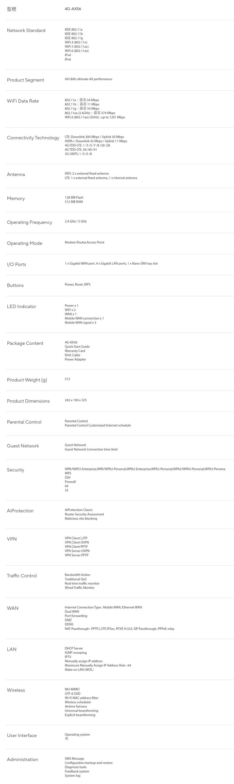 ● Cat.6 300Mbps 雙頻 WiFi 6 AX1800 LTE 路由器