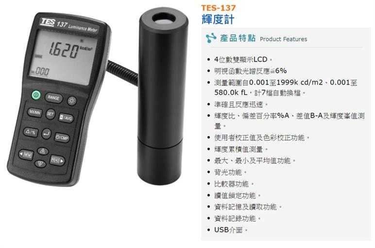 * 測量範圍自0.001至1999k cd/m2、0.001至580.0k fL,計7檔自動換檔。