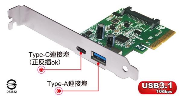 伽利略 PCI-E 4X USB 3.1擴充卡(TypeA+C)