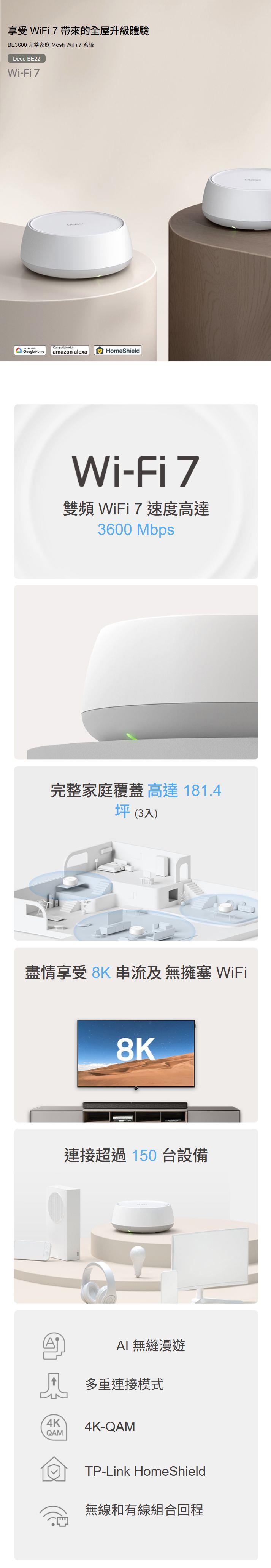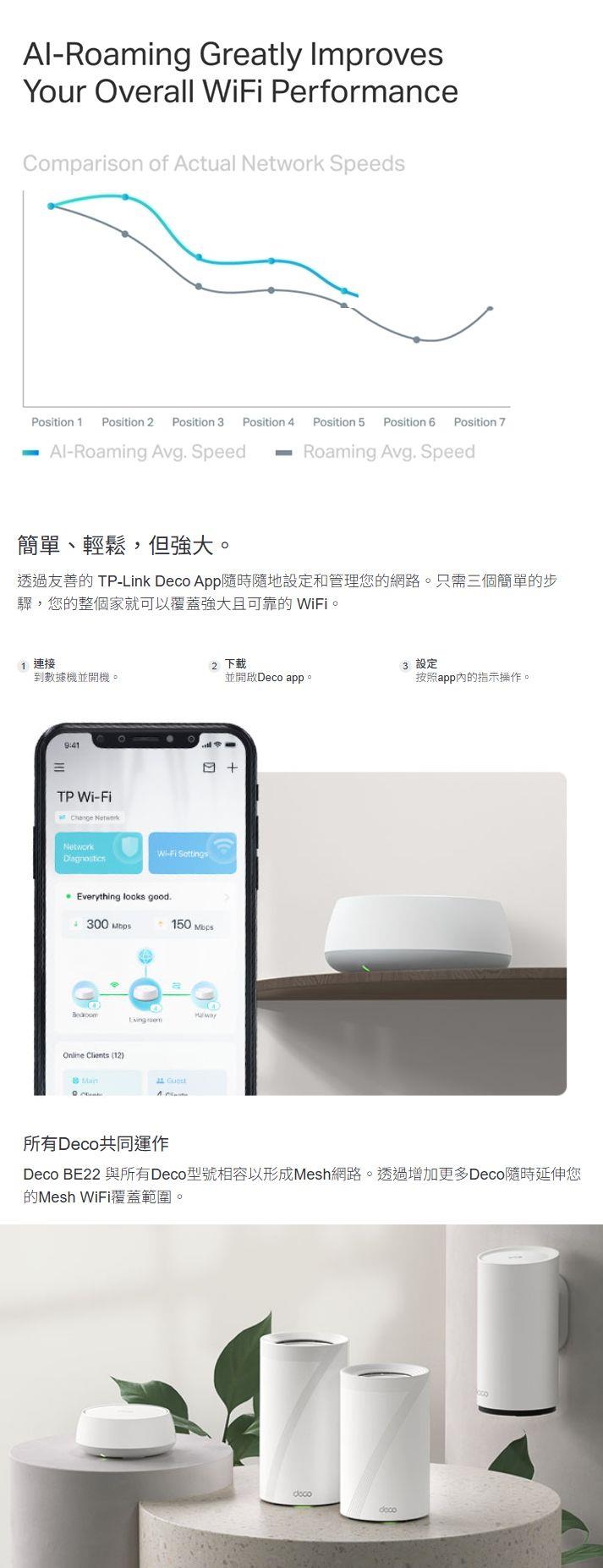 - 無縫 AI 智慧漫遊 – 形成一個具有內建 AI 智慧漫遊的統一網路,為您的家庭建立理想的 Wi-Fi 解決方案。