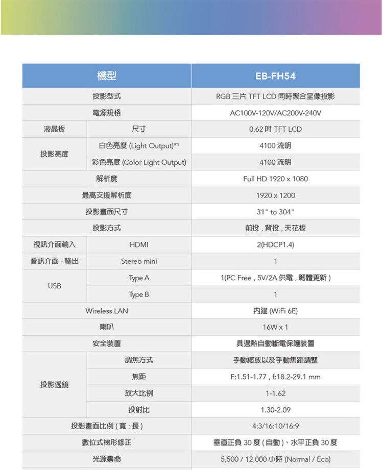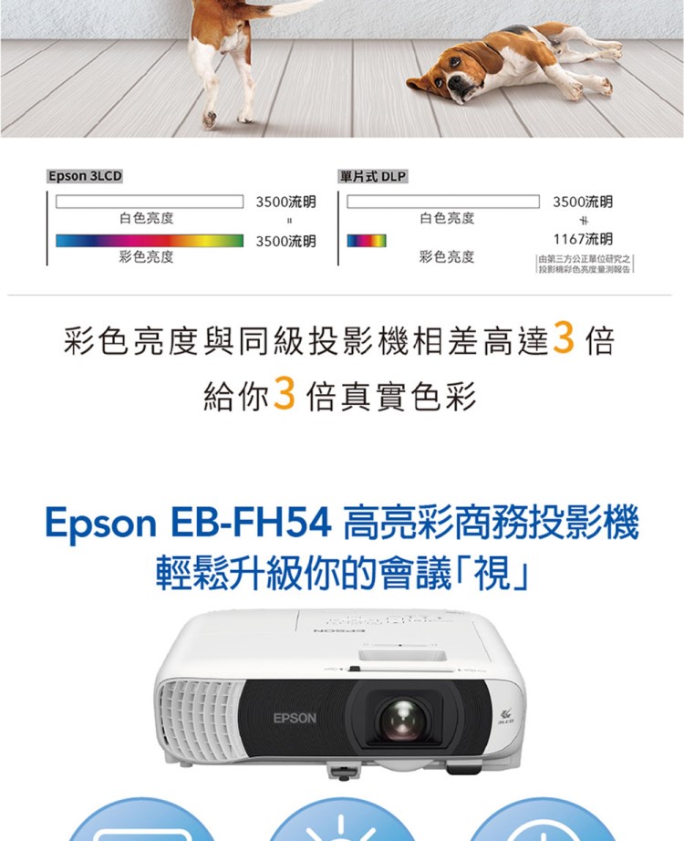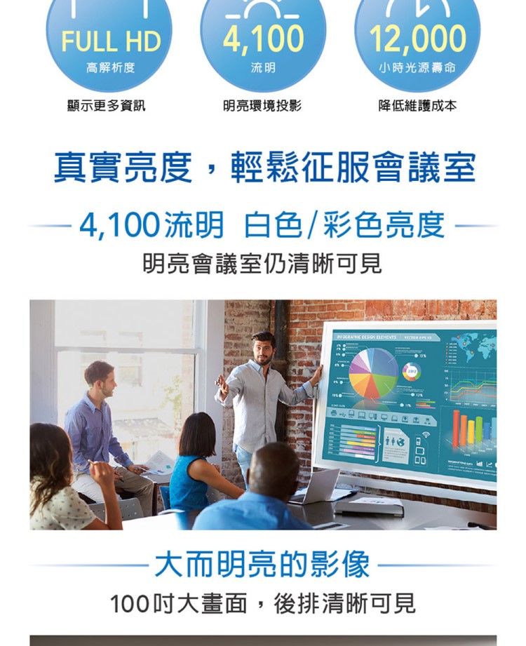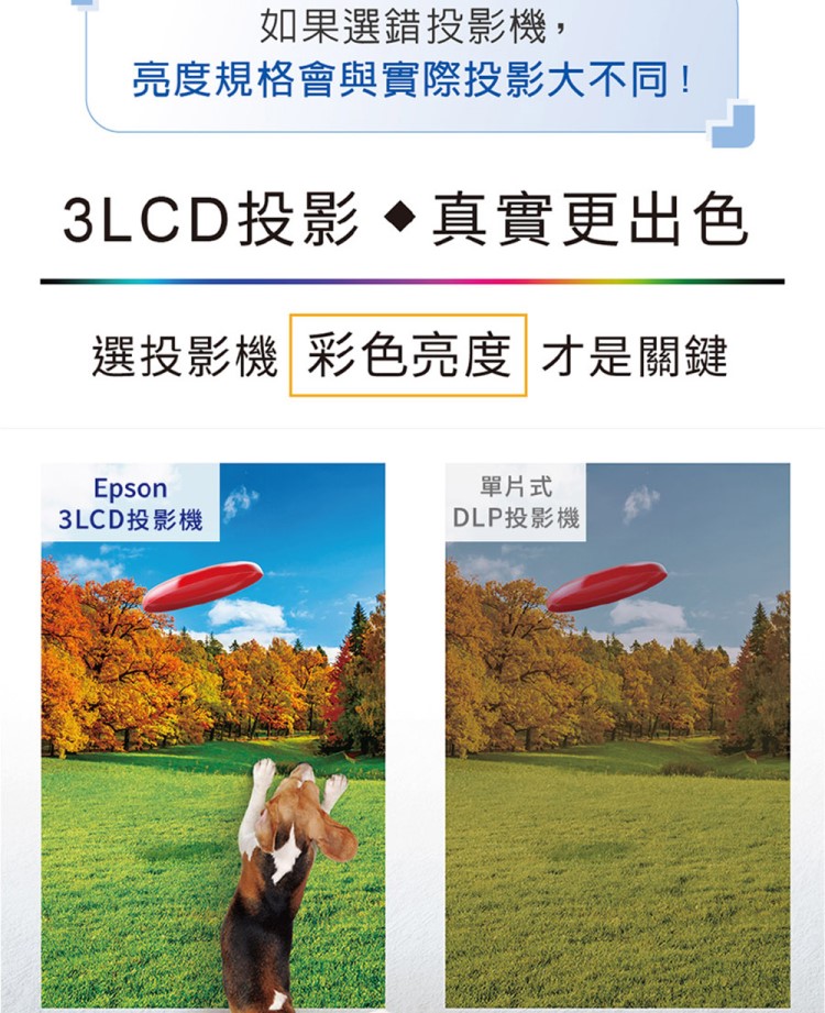 .3倍彩色亮度,白色/彩色亮度4100流明,不關燈也清楚投影