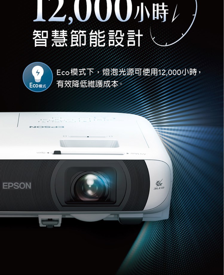 .燈泡壽命長達12,000小時(Eco模式)省電安心,滿足長時間使用需求