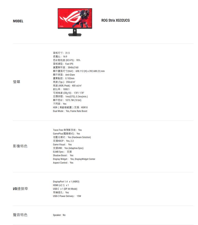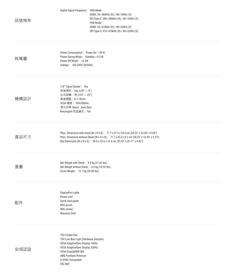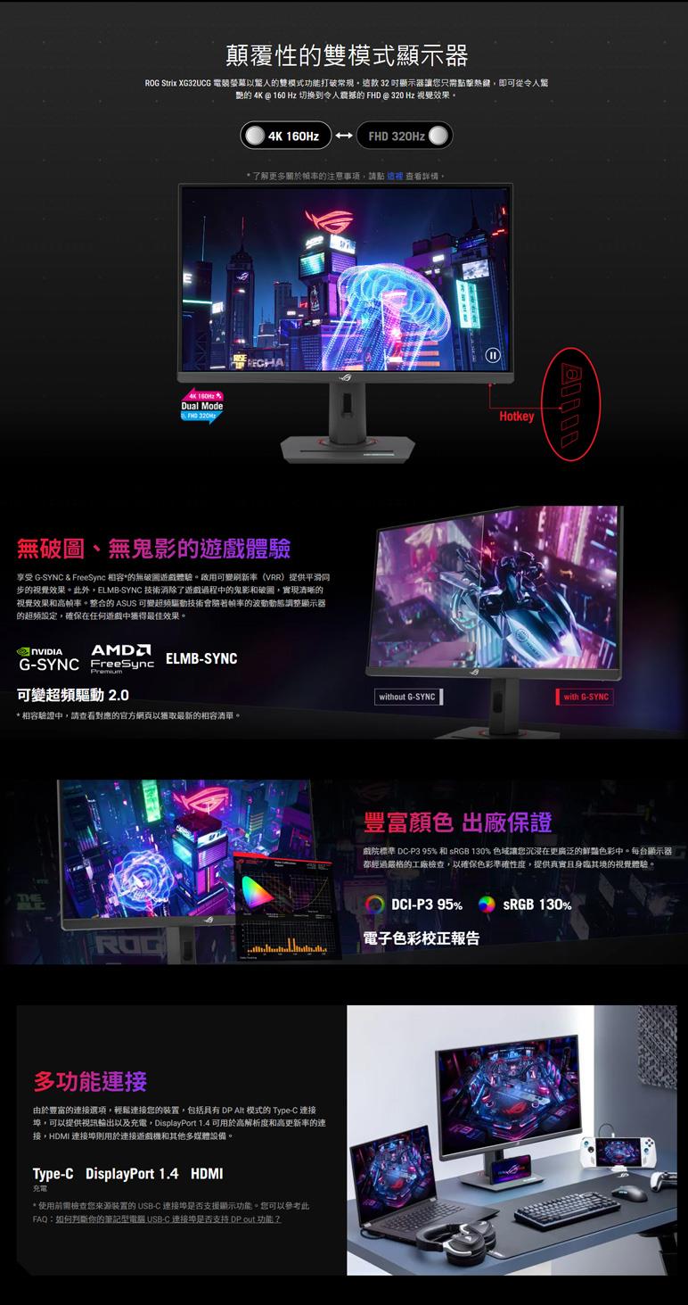 ● 更新頻率:4K 160Hz/FHD 320Hz (雙模式)