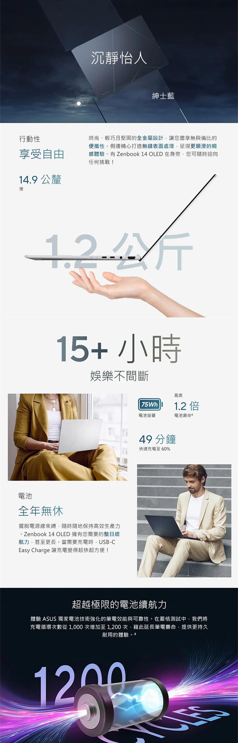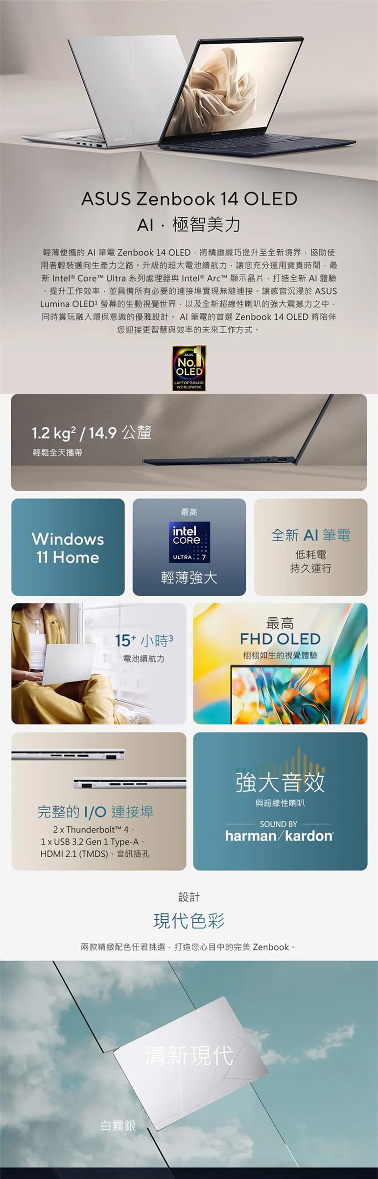 ●特色 : 輕 1.2公斤、薄14.9公釐