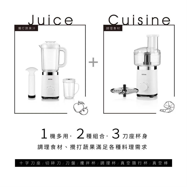 - 配件:攪拌杯組(附蓋、十字刀座)、調理杯組(附蓋、切碎刀、刀盤、推料棒)、真空隨行杯組(附蓋、真空棒)