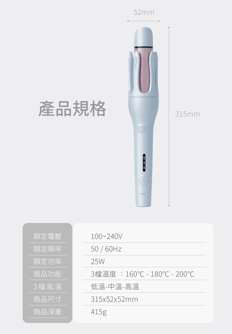 捲髮方向 ( 左/右 ) 一鍵雙向可調