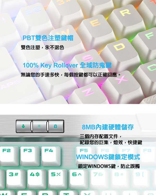 ◎ 採用PBT雙色注塑成型鍵帽-白色