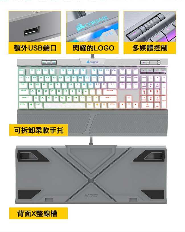 CORSAIR 海盜船 K70 RGB MK.2 SE電競鍵盤 銀軸 英文