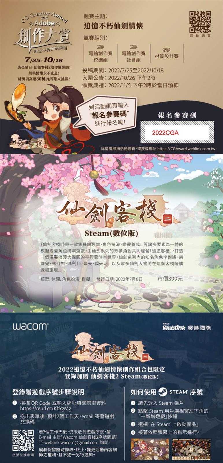 炎炎夏日,仙劍客棧2陪你過暑假!2022/7/25-10/18,為期三個月的數位創作競賽「Creator CG award 2022 Adobe用戶創作大賞」開跑囉!