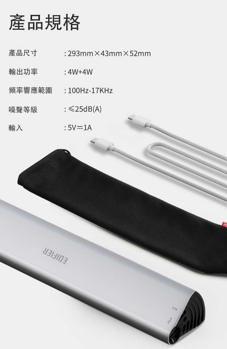 | 輸入介面: | USB Type-C、藍牙、AUX(3.5mm) |