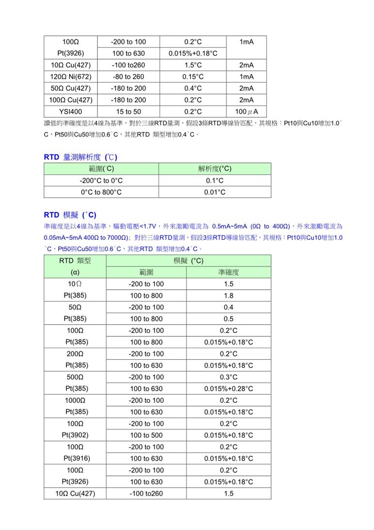 ■ 可模擬和量測14種不同的 RTD 類型和電阻。