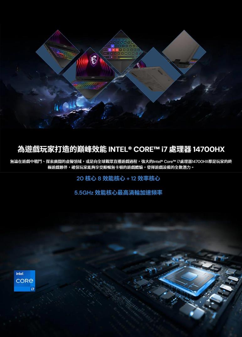 | 處理器 | Intel® Core™ i7 processor 14700HX20 cores (8 P-cores + 12 E-cores), Max Turbo Frequency 5.5 GHz |
