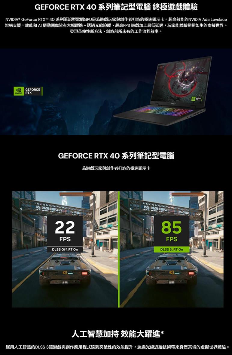 | 顯示卡 | NVIDIA® GeForce RTX™ 4050 Laptop GPUUp to 2370MHz Boost Clock 115W Maximum Graphics Power with Dynamic Boost. *May vary by scenario |