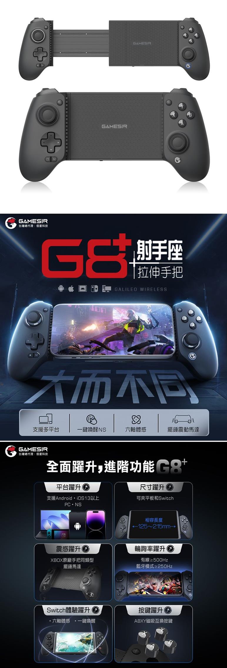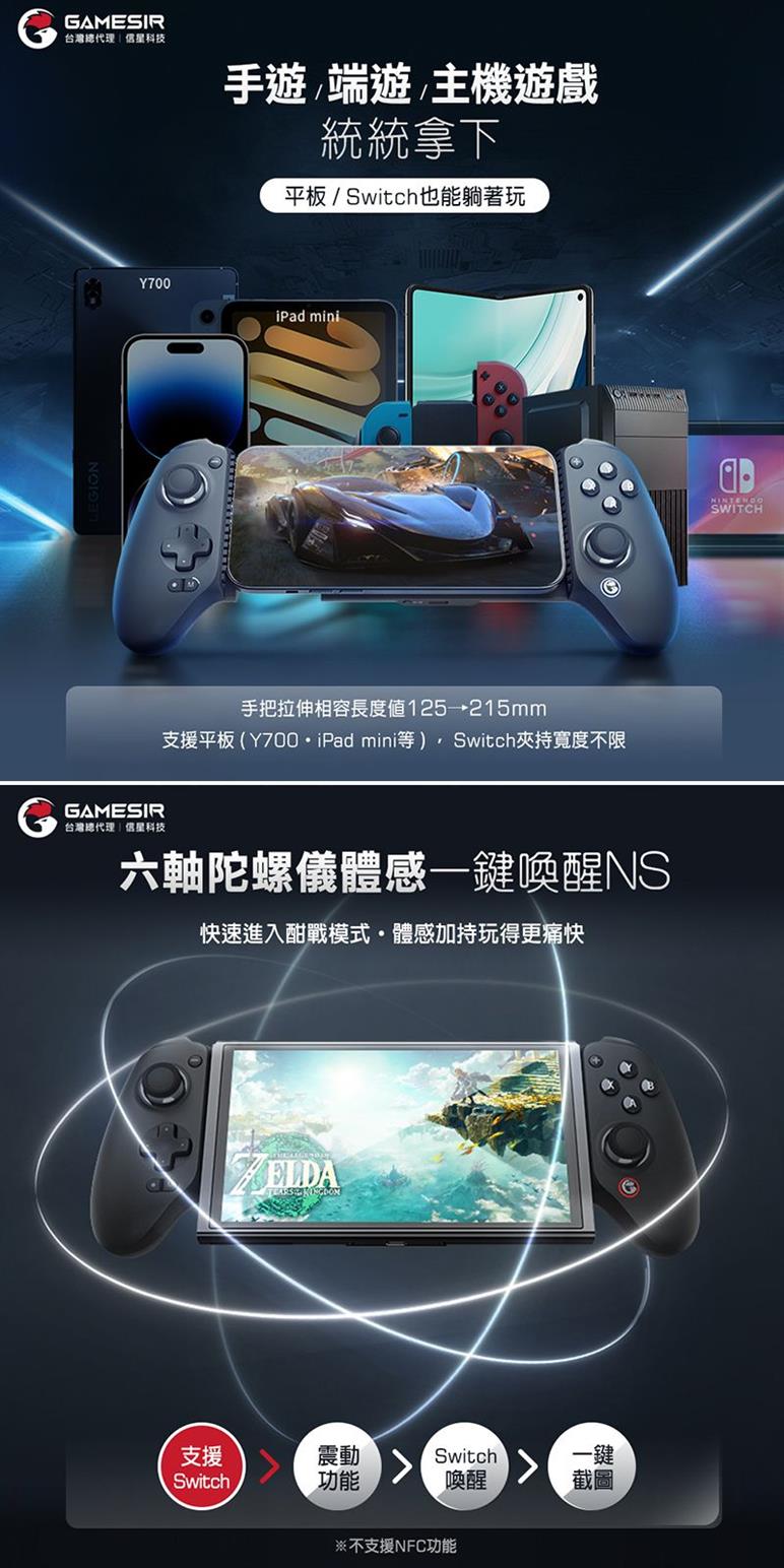 ●125-215mm拉伸自如,可夾平板和NS遊玩
