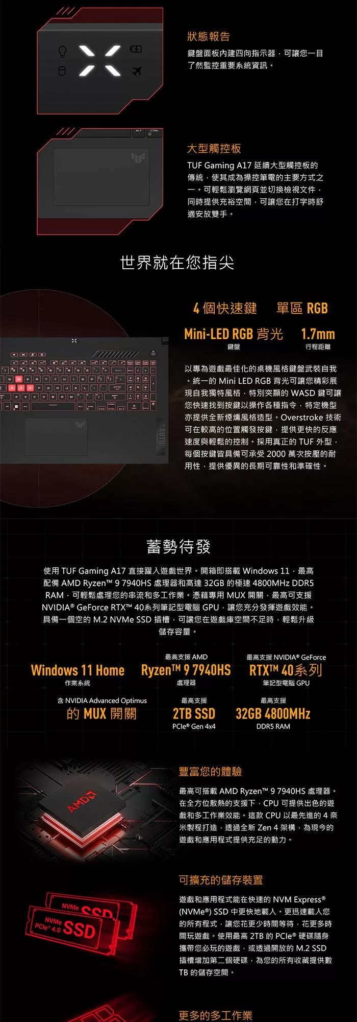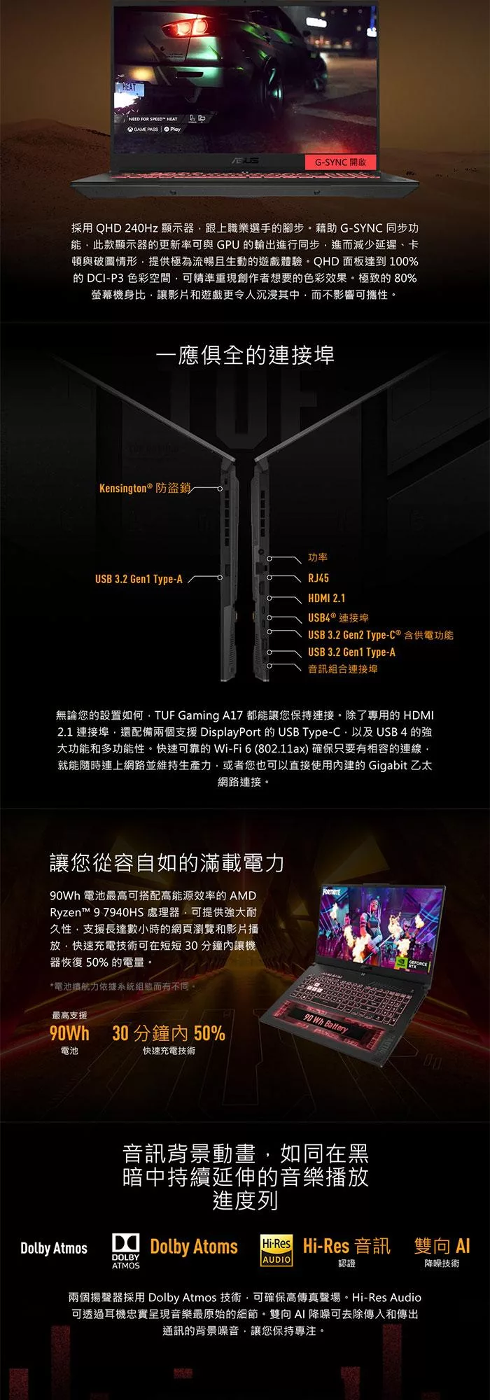 螢幕尺寸:17.3 "(薄邊框)/FHD (1920 x 1080) 16:9/144Hz/IPS-level/Anti-glare/G-Sync