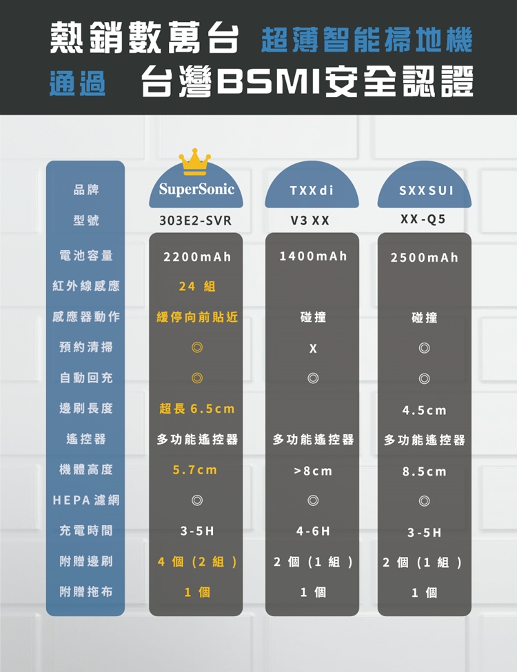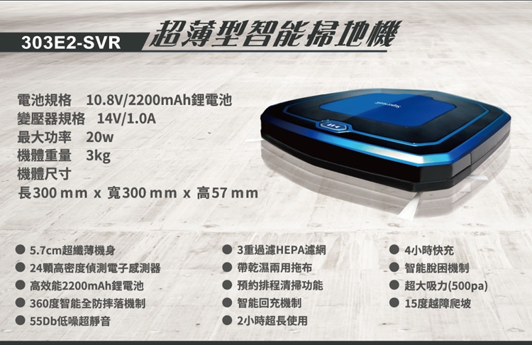 ※型號:HERAN SUPERSONIC 超薄型智能掃地機