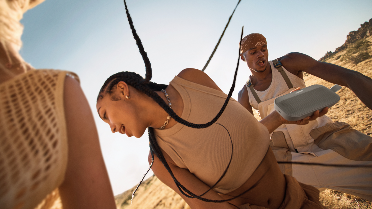 IP67 等級代表這款防塵防水揚聲器幾乎適用於任何環境。甚至還能漂浮在水面上。