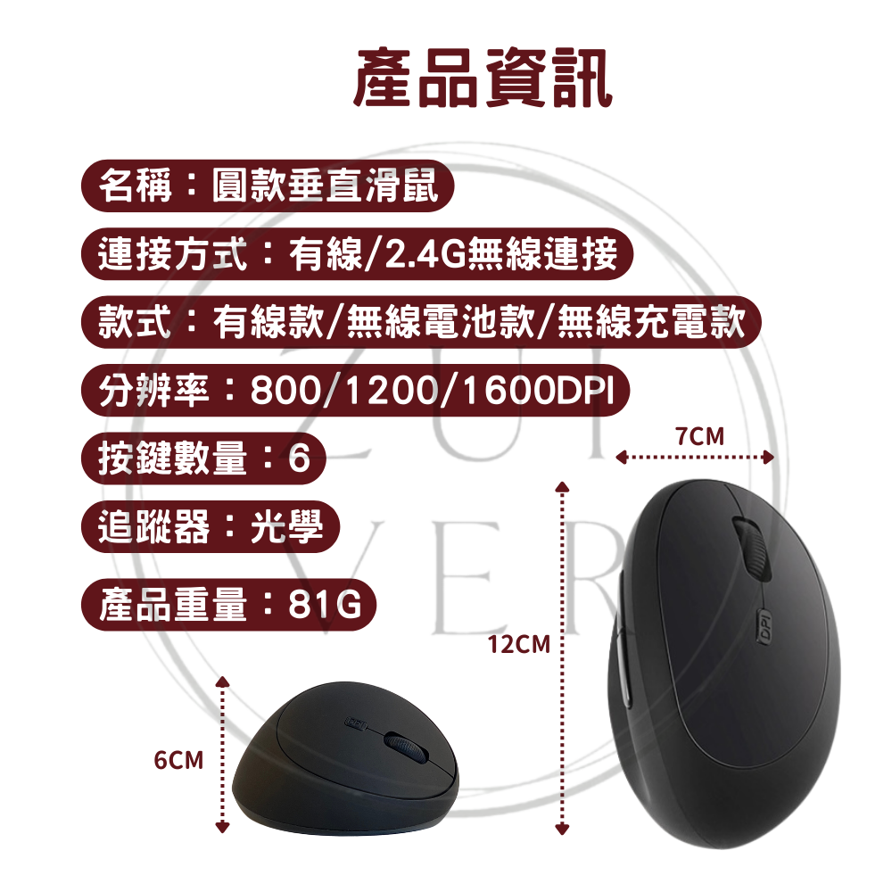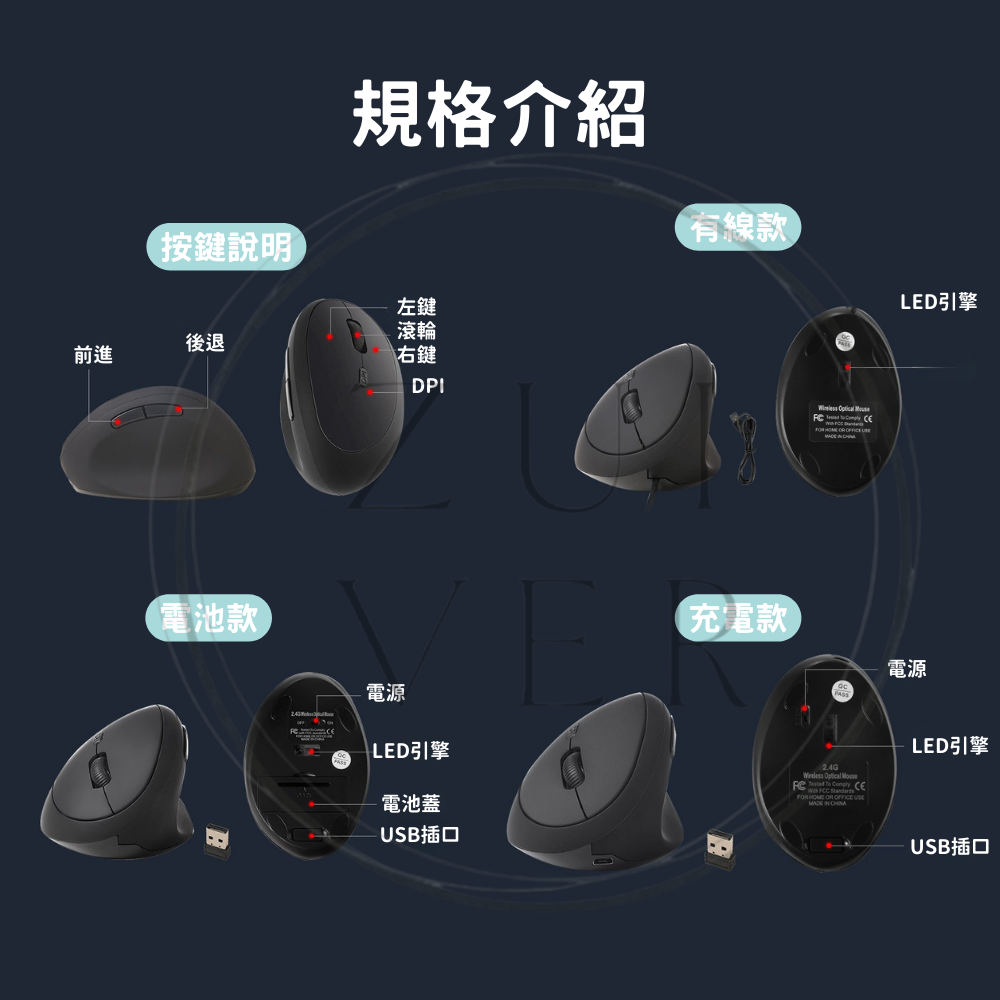 📦 包裝內容:垂直滑鼠 x1、USB接收器 x1、使用說明書 x1