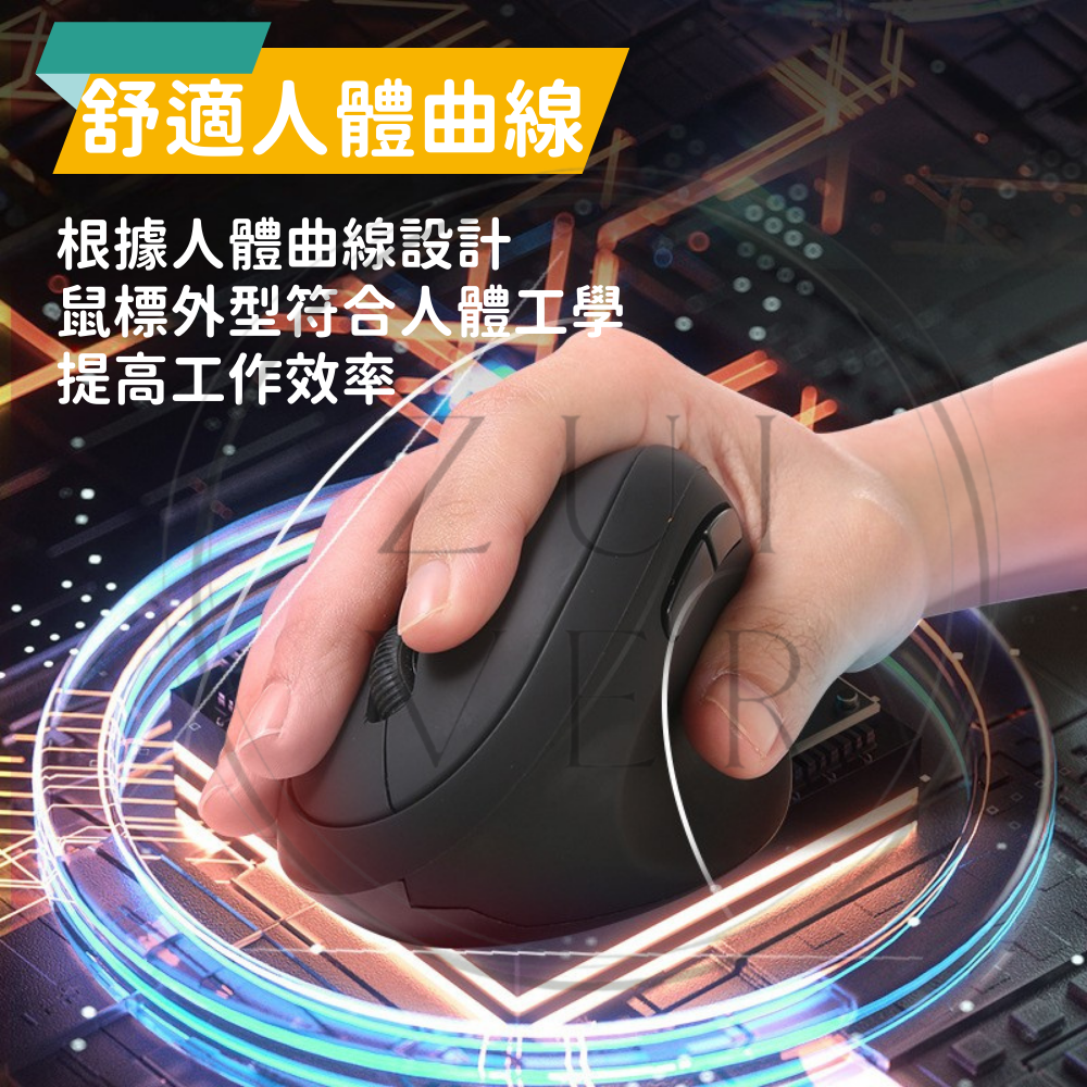 符合人體工學的 垂直滑鼠,減少手腕壓力,特別適合小手使用者與長時間辦公、遊戲的需求。