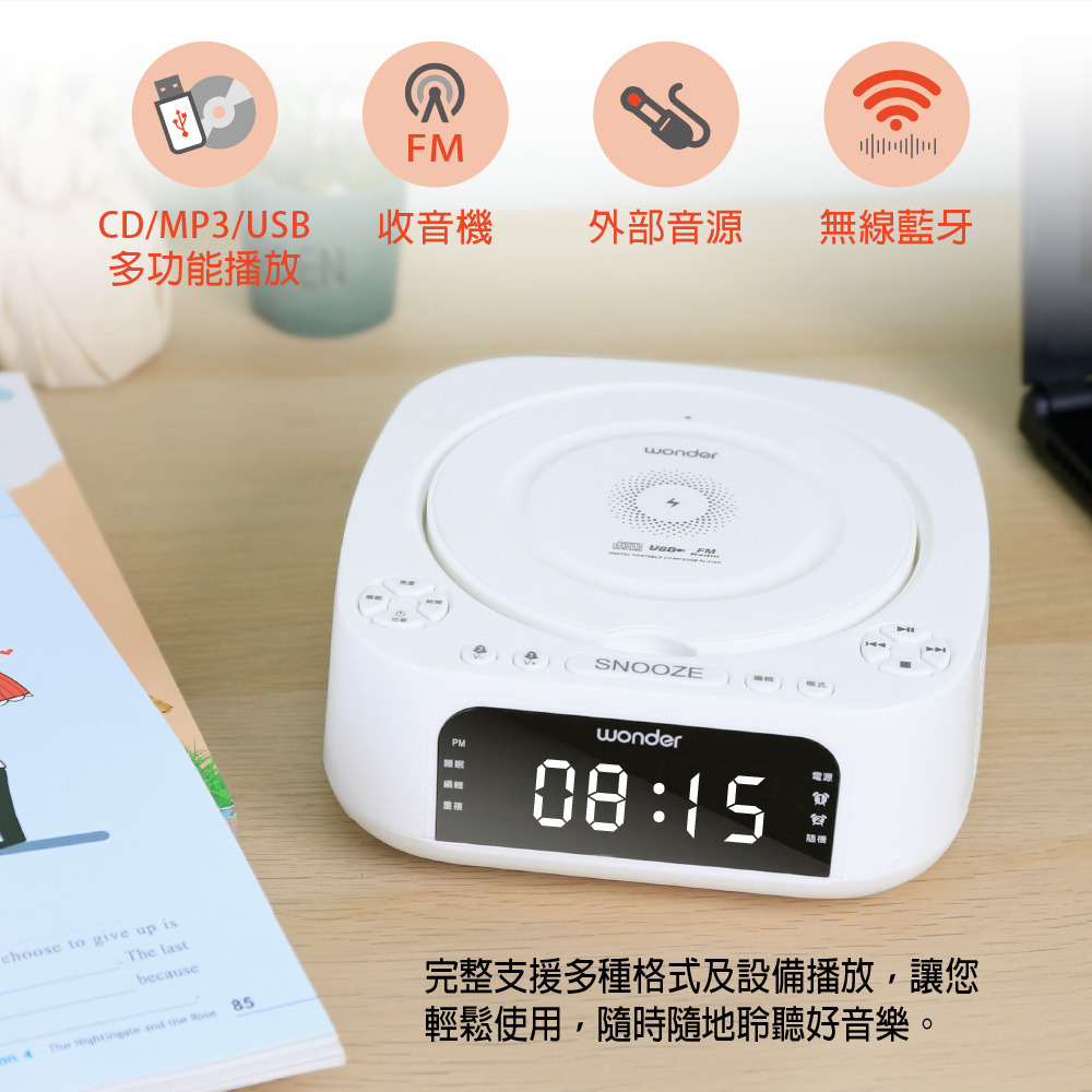 【WONDER 旺德】藍牙10W無線充 CD/MP3/USB立體聲音響 (WS-B035U)