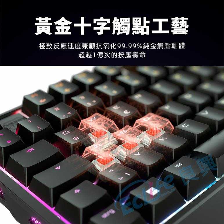 ★RGB彩光側翼 ★炫彩1680萬色RGB燈 ★CNC鋁合金氧化陽極上色 ★功能齊全的快捷按鍵 ★108鍵正刻雷雕鍵帽 ★支援多平台 (PC/手機/平板/遊戲機) |