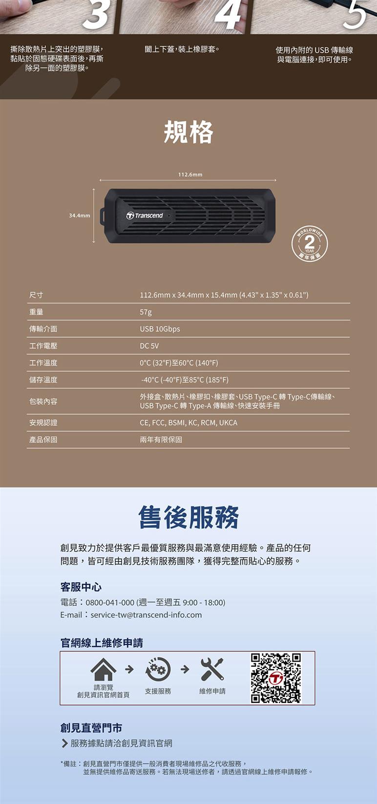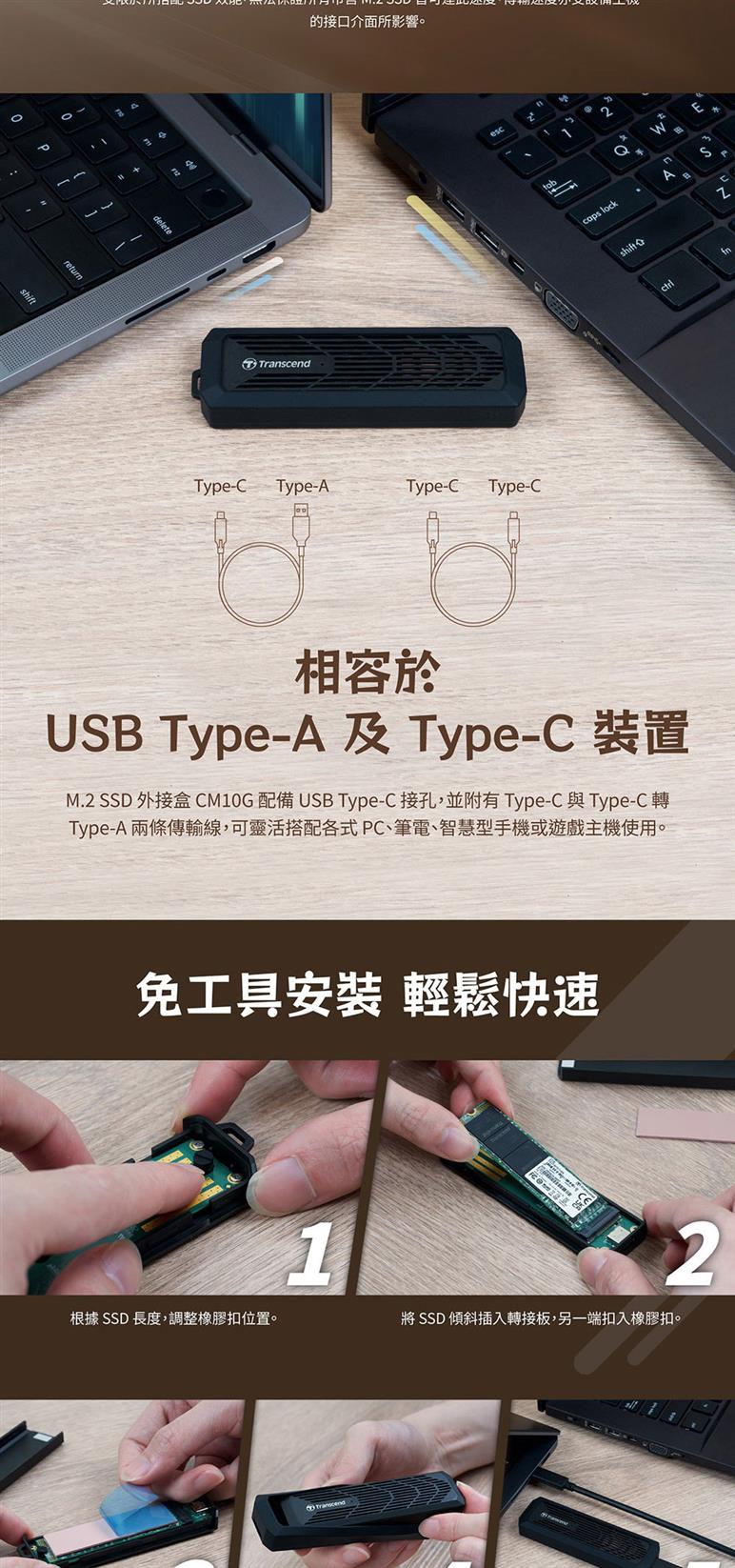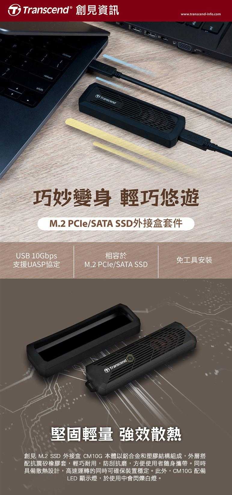 Transcend 創見 M.2 PCIe/SATA SSD 抗震 外接盒套件