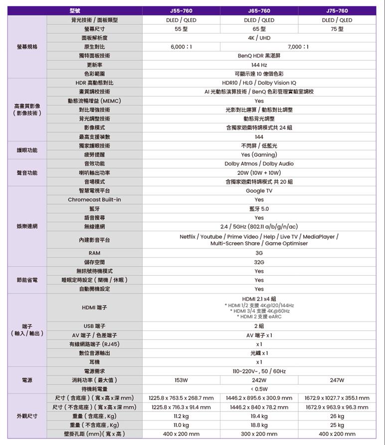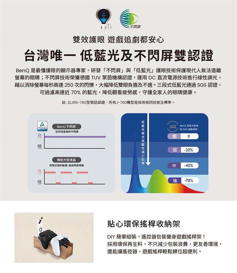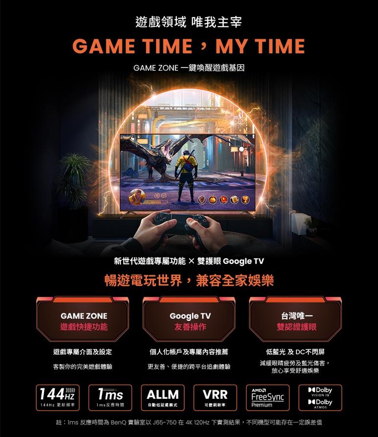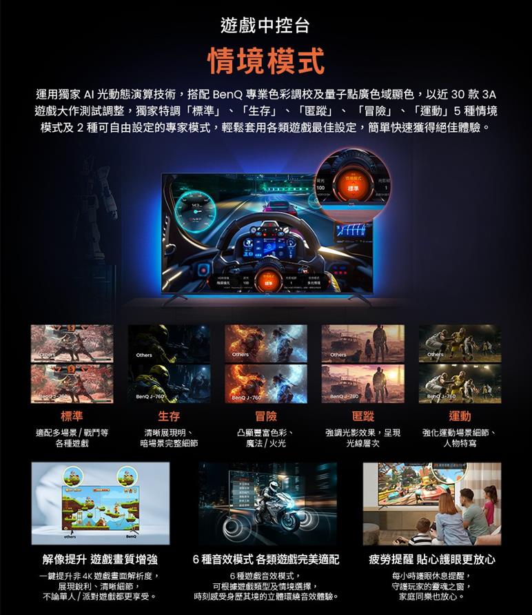 BenQ 65吋量子點遊戲Google TV連網液晶顯示器J65-760 (含基本安裝) {{specImage.SkuName}}