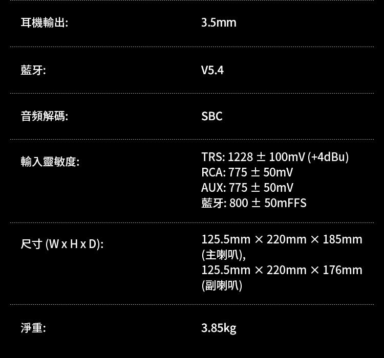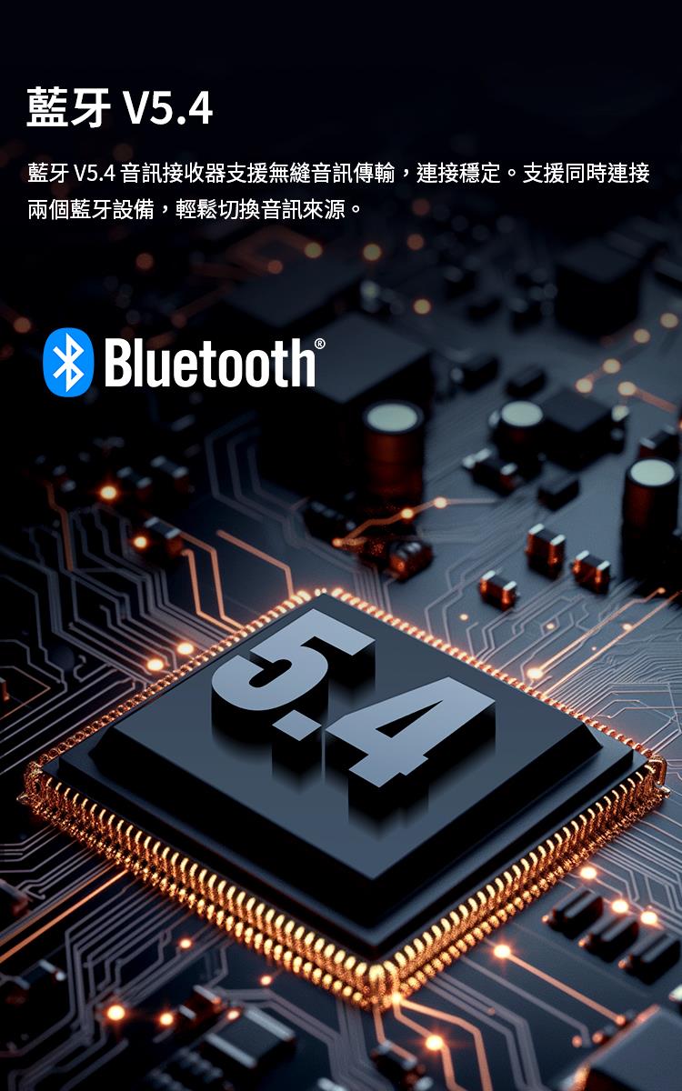 ◎ 藍牙5.4/專業連接介面:TRS / RCA / AUX
