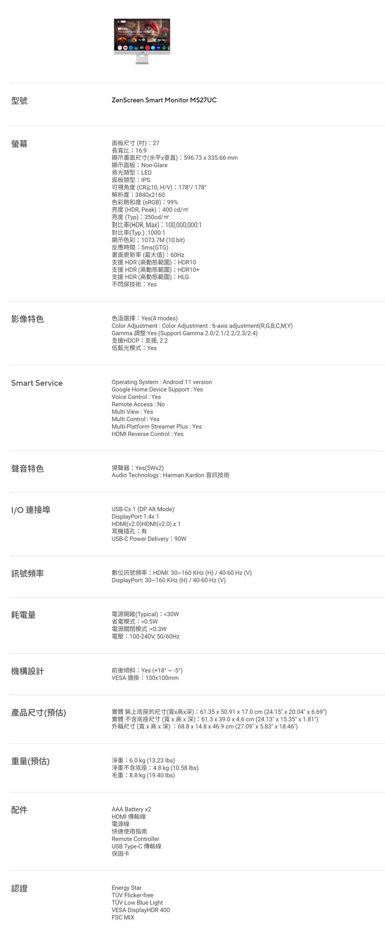 ● 亮度:350(Typ.) / 400(HDR,Peak)