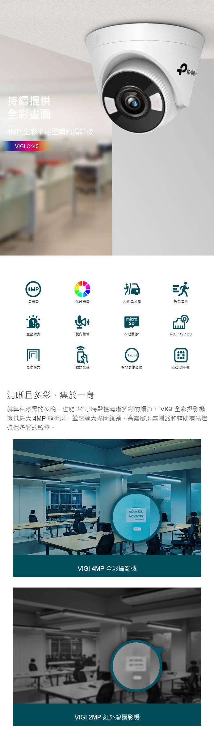 - 4MP 高畫質:VIGI C440 攝影機提供高達 4MP 的影像 – 更高的畫質帶來更細節的影像。