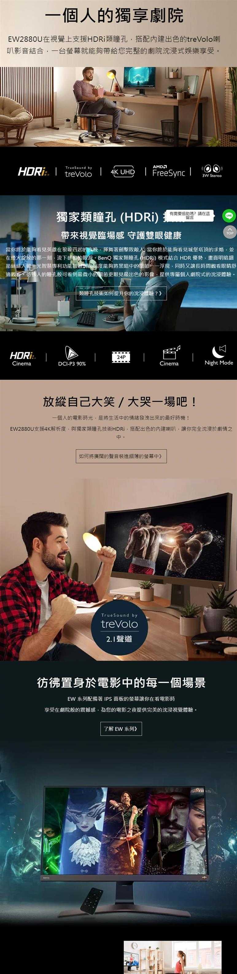 . 獨家類瞳孔護眼技術 (HDRi),搭配4K解析度,帶來完美視覺臨場感
