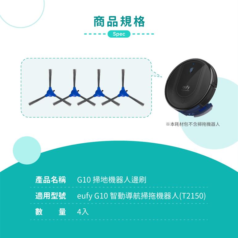 eufy G10智慧動能導航掃地拖地機器人(T2150)專用邊刷4入