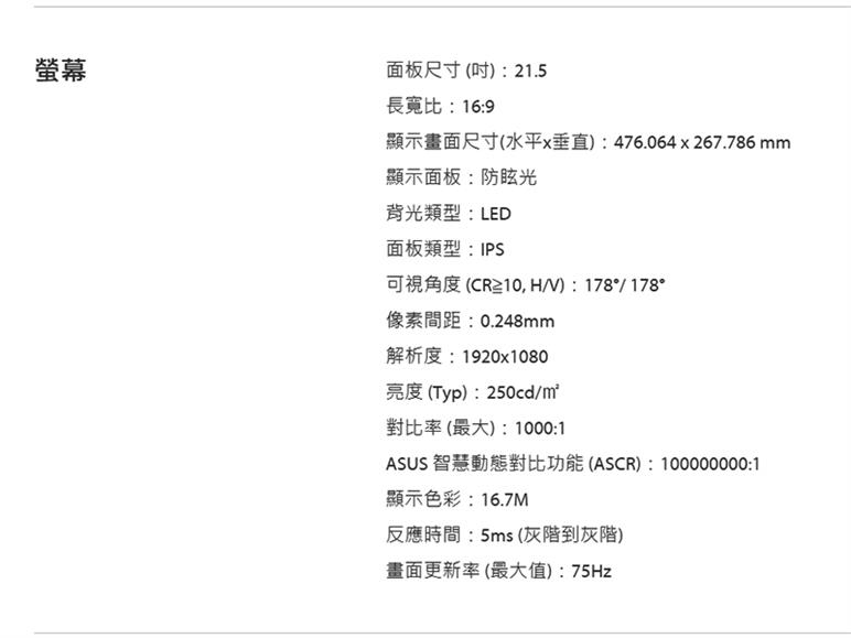 ASUS華碩 22型 VP229Q IPS 廣視角螢幕