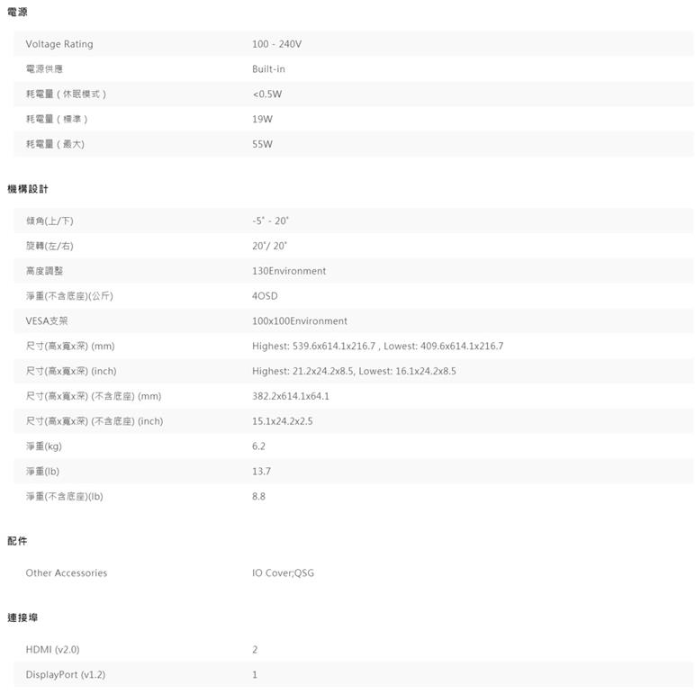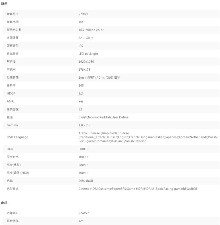 ● 反應時間:1ms (MPRT) / 2ms (GtG) 毫秒