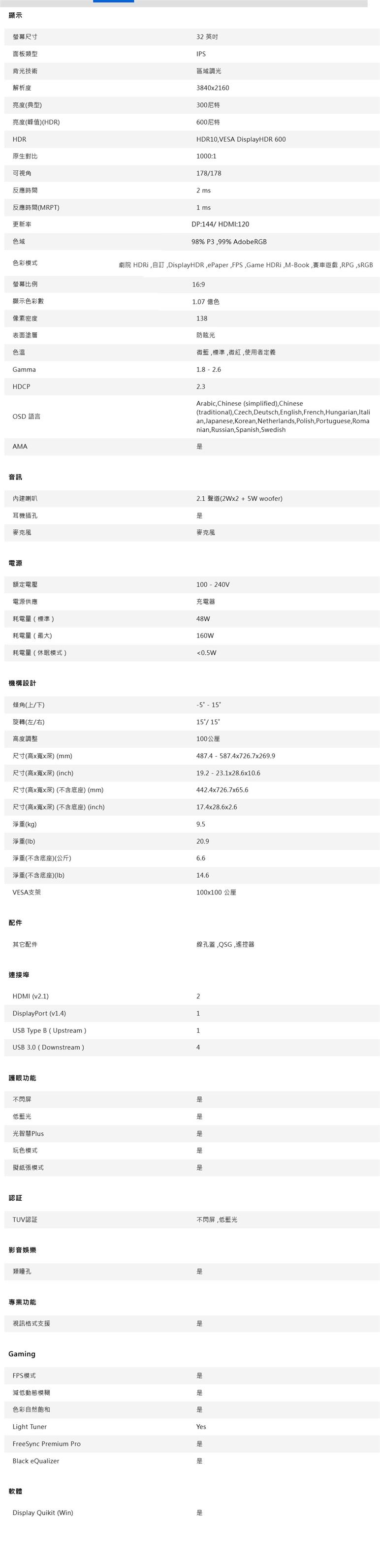 ● 最高解析度:3840x2160 4K UHD