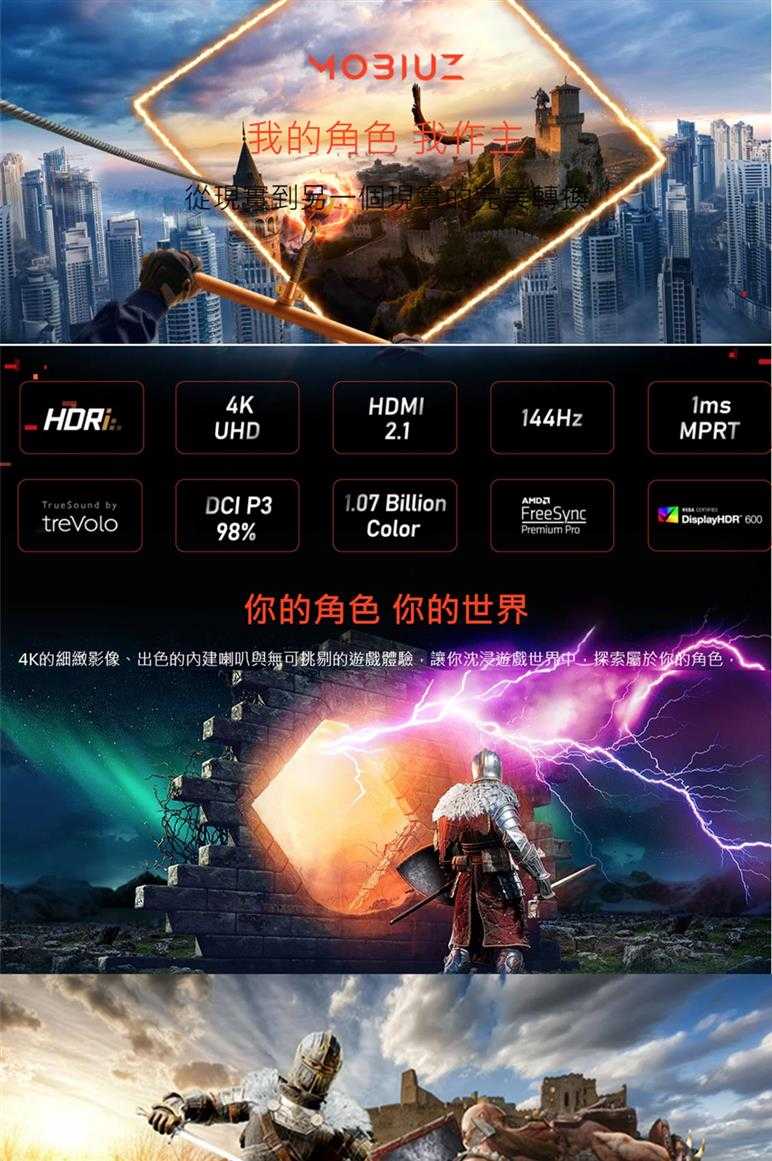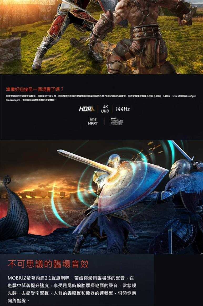 HDMI 2.1、4K 144hz,同時支援1ms MPRT、AMD FreeSync? Premium Pro與原生10bit面板,最高規格打造頂級遊戲體驗