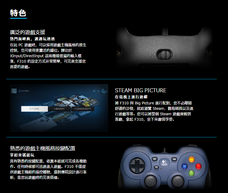 ◎ 此遊戲手把採用經典配置,讓PC遊戲也能擁有遊戲主機的操控手感。