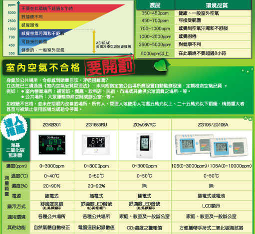能在CO2濃度達到1000ppm時發出警報,1000ppm是ASHRAE(美國供熱、製冷與空調工程師協會)的界限,亦可自行調整設定ppm之警報值或者解除警報功能。