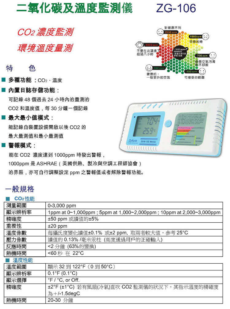 ZG106 二氧化碳及溫度監測儀操作說明書