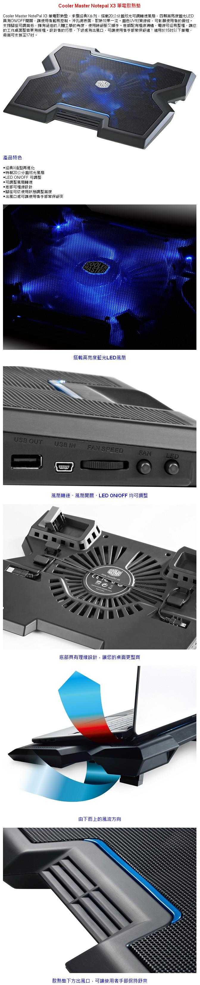 Cooler Master Notepal X3 筆電散熱墊 {{specImage.SkuName}}