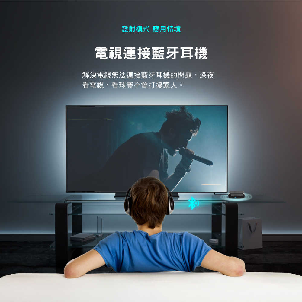 1.把電視機的聲音透過BRX-2000A轉成藍牙信號傳送給藍芽耳機,不怕看電視吵到其他人