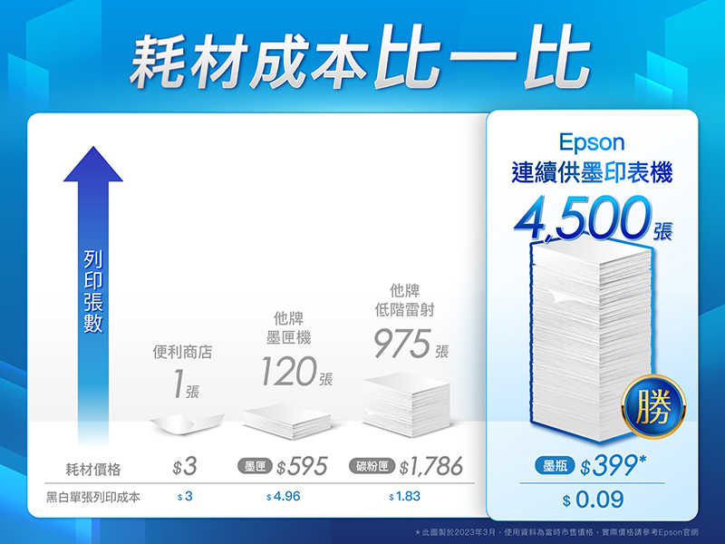 .省又安心:一組墨水可印黑白4,500張&彩色7,500張