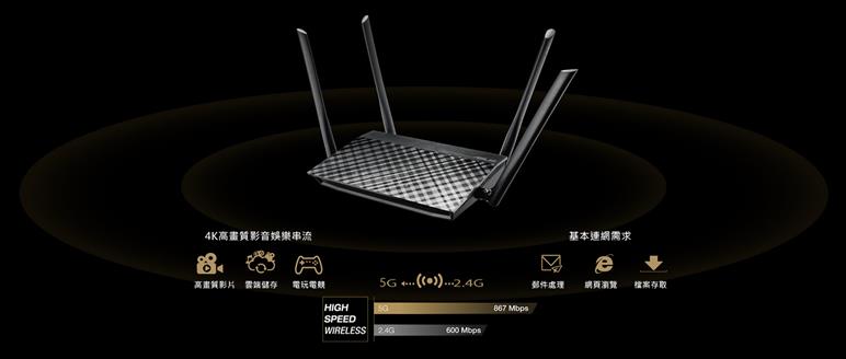 RT-AC1500G PLUS 在 5 GHz 下提供高達 867 Mbps 的速度,