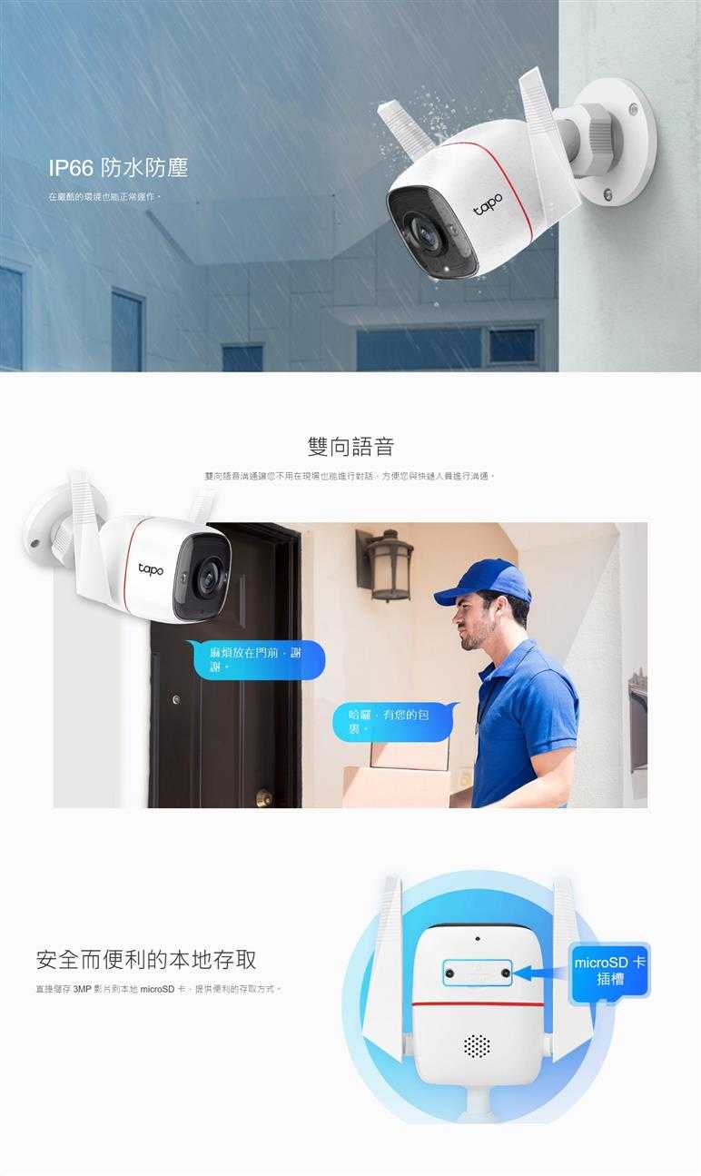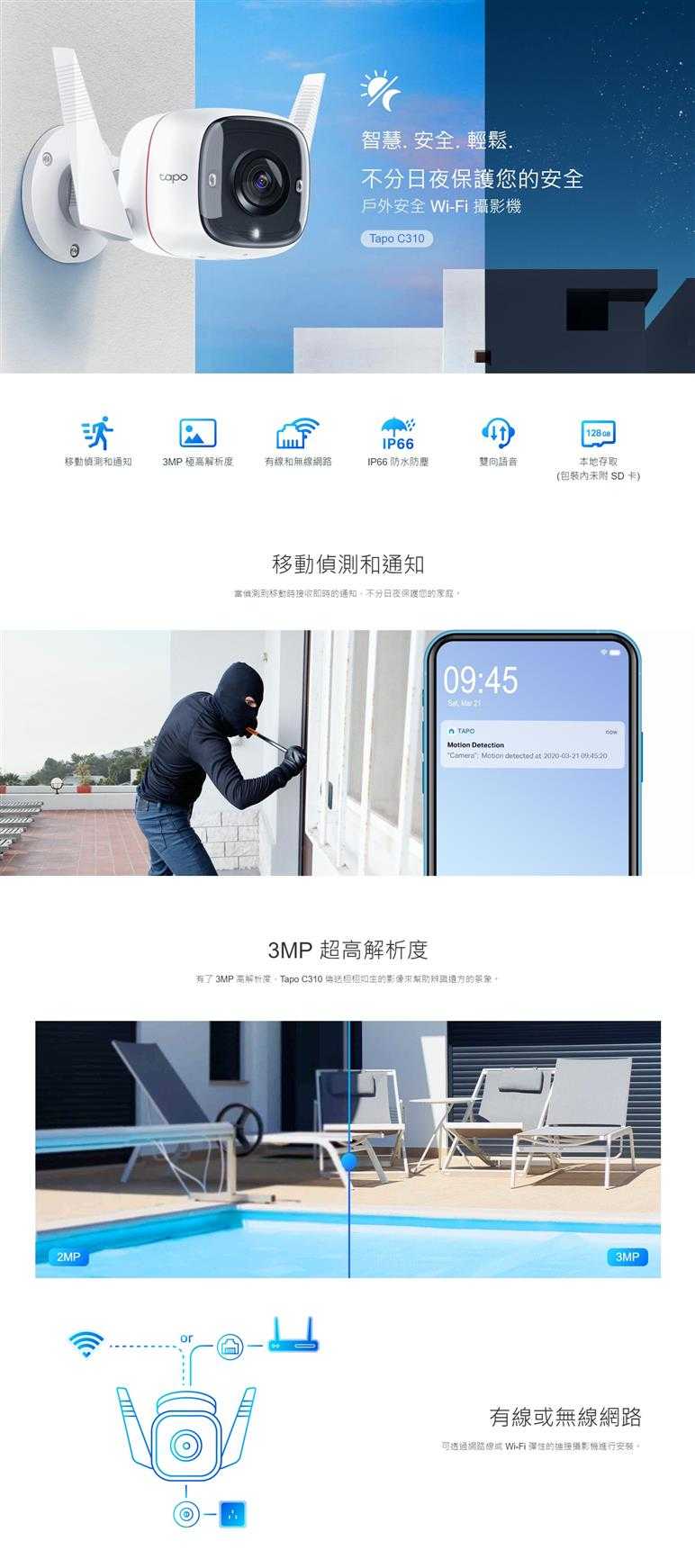 - 安全儲存: 支援使用 128GB SD 卡本地儲存 3MP 影片,提供便利的方式存取您的影片。