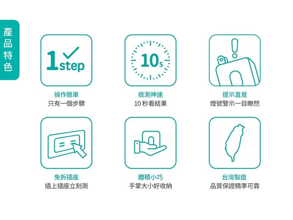 ● 不需拆家 ! 一鍵即測插座及管線狀態 !