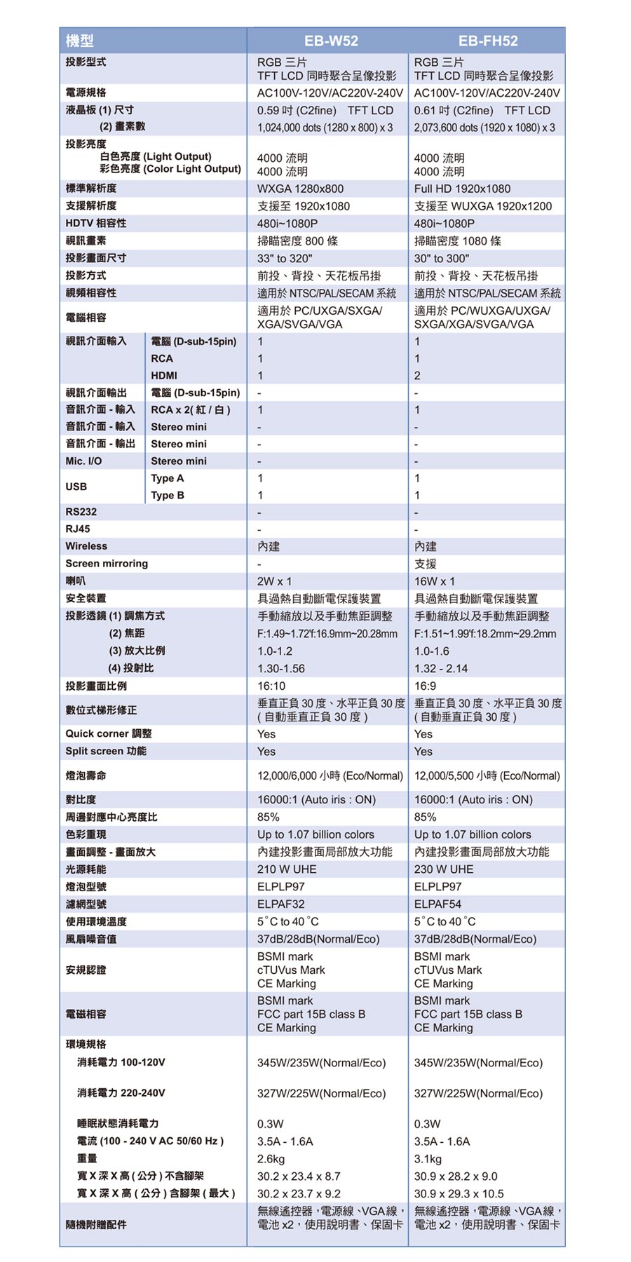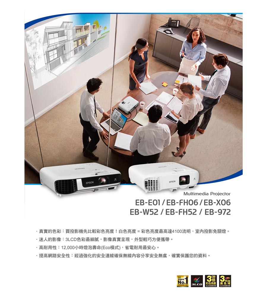 .燈泡類型:ELPL97;燈泡壽命:12,000/6,000小時(Eco/Normal)