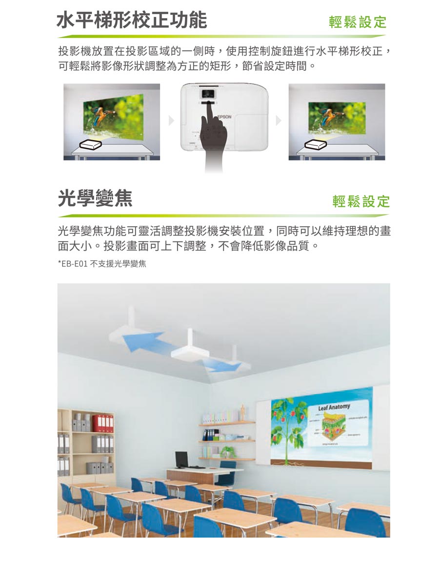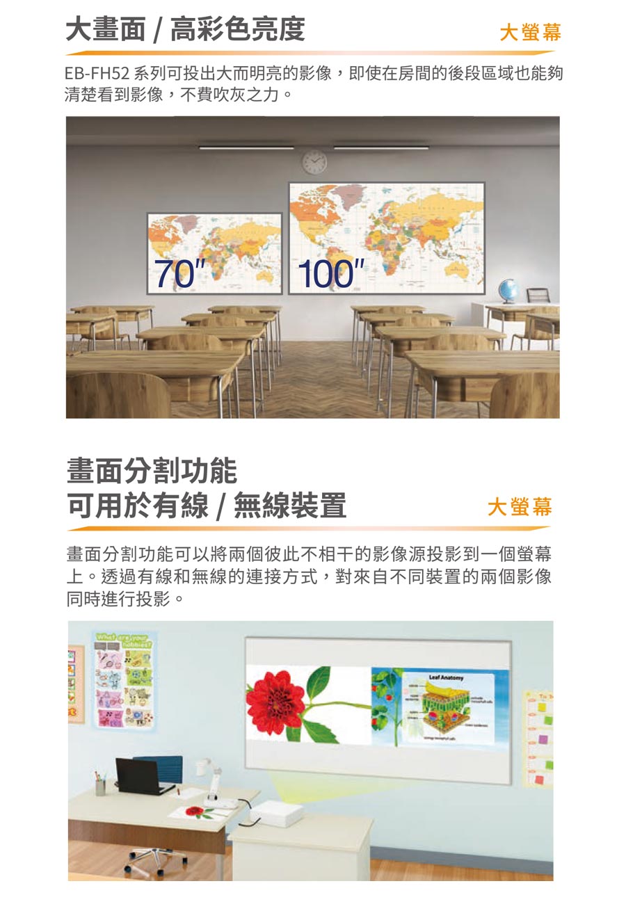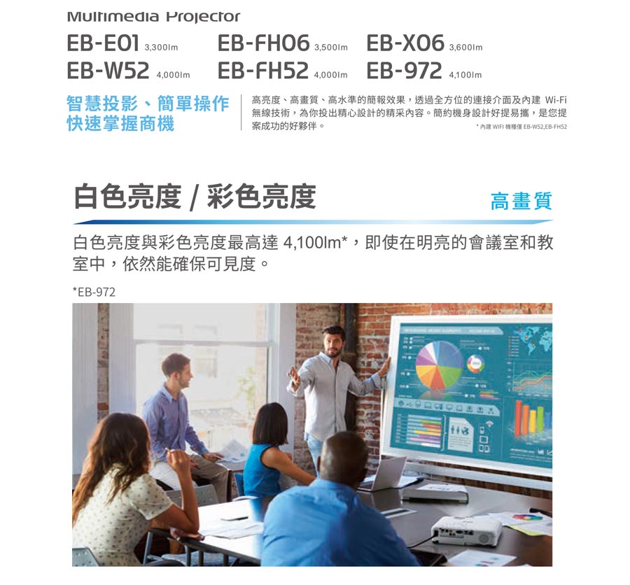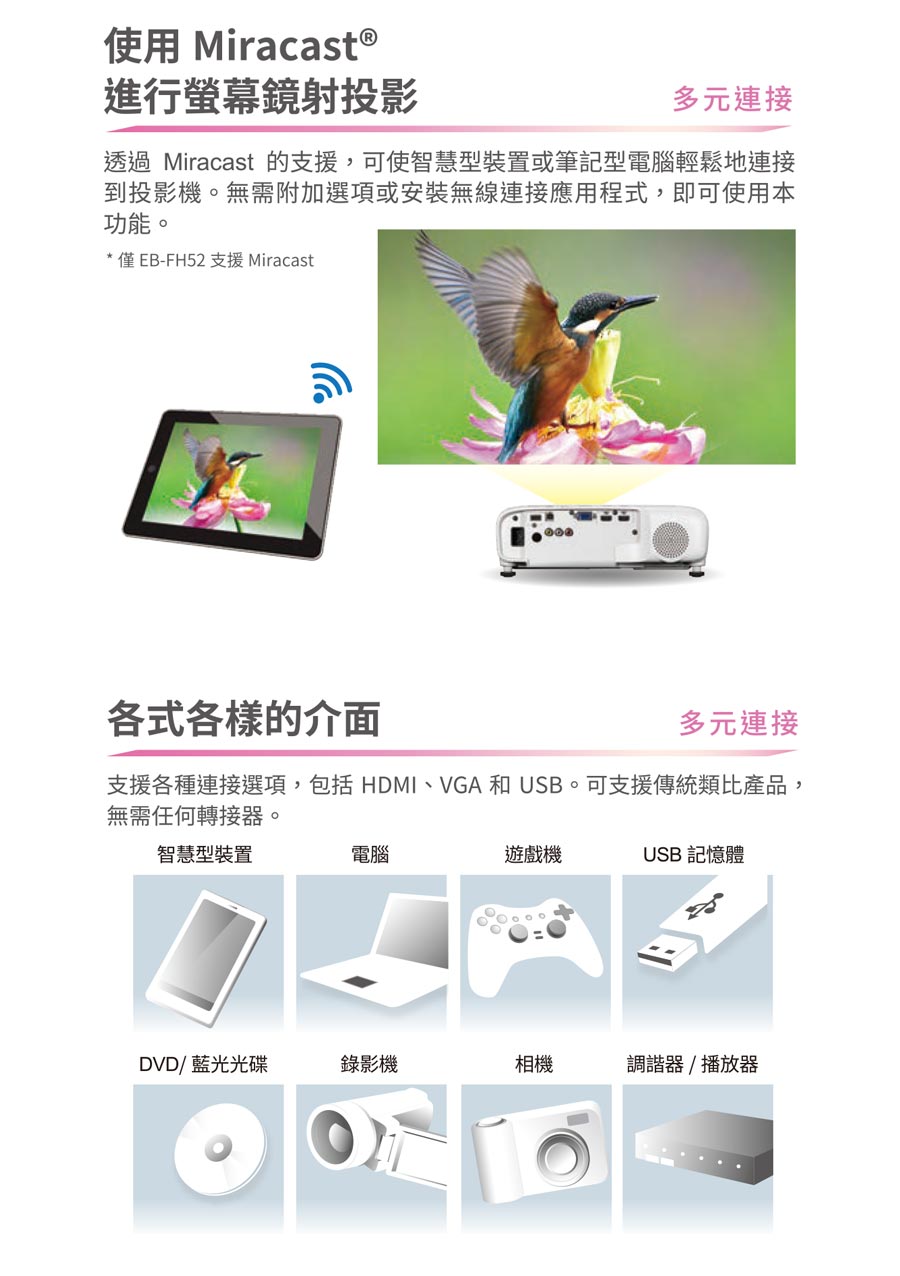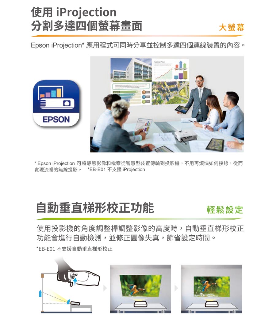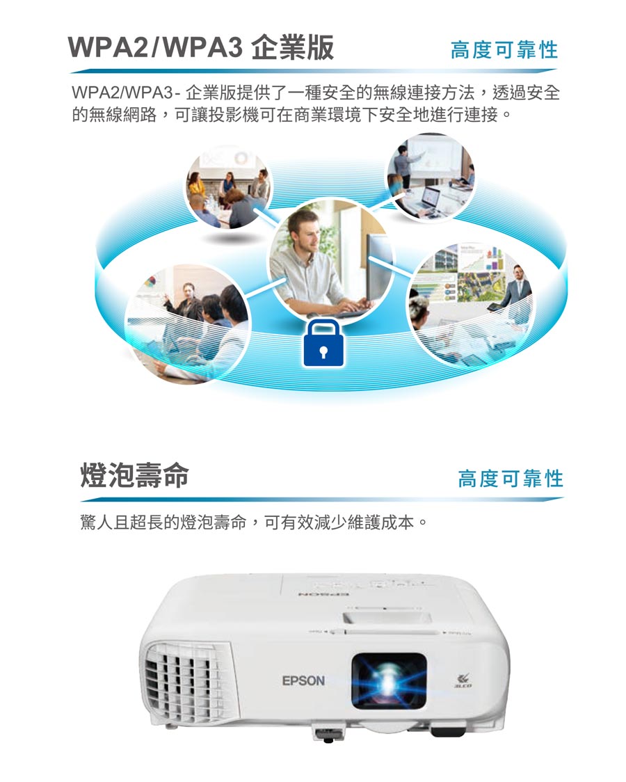 .內建Wi-Fi 無線連接投影功能,支援Epson iProjection APP,智慧裝置隨時投!