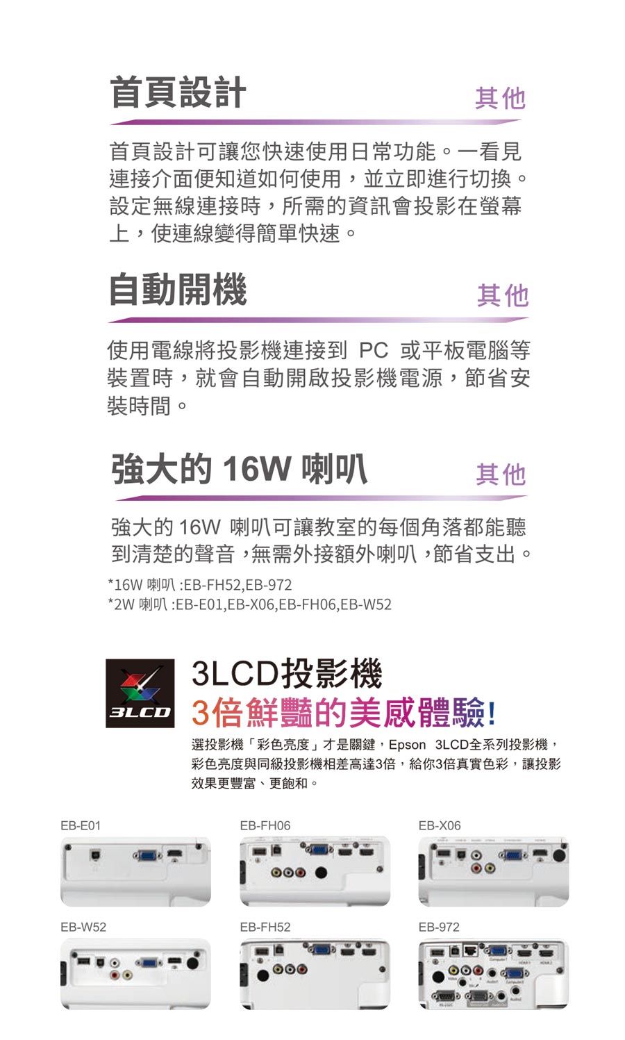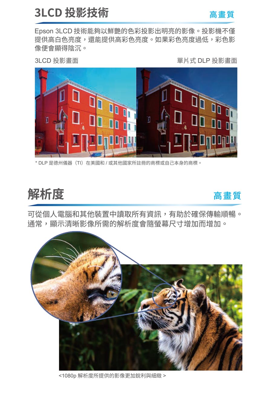 【美】3LCD色彩最細膩,影像真實呈現。外型輕巧方便攜帶