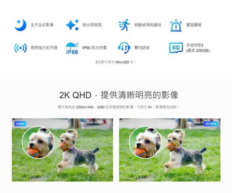 ● 2K 超高畫質-使用超清晰 2560x1440 解析度錄製每個影像