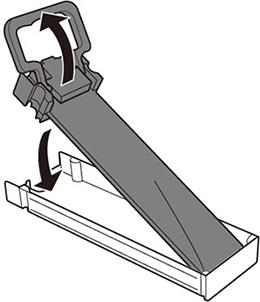 5.如圖所示將新墨水包裝入墨水包托盤。確保墨水包的頂部與托盤頂部齊平。